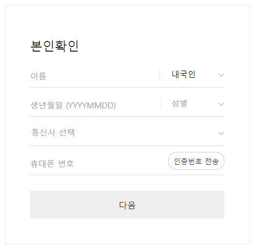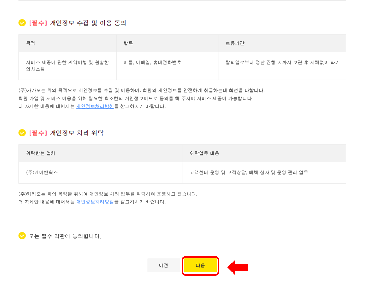 개인을 선택하시고 약관에 동의를 한 후 다음으로 넘어가 주세요.