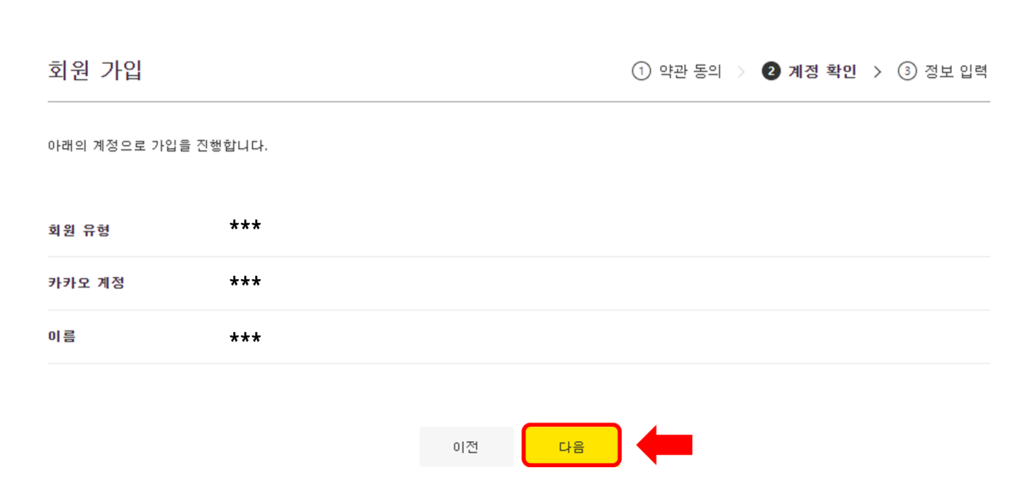 계정 정보를 알려주고 자신의 정보와 일치하면 다음을 눌러주세요.