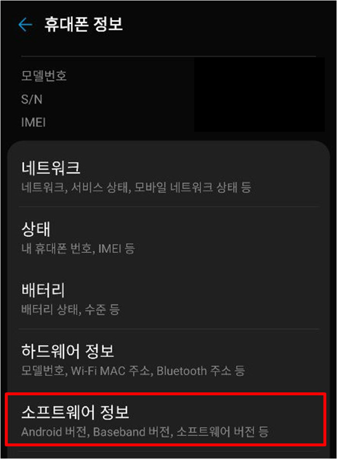 휴대폰 정보로 들어가시면 소프트웨어 정보가 있을 겁니다.